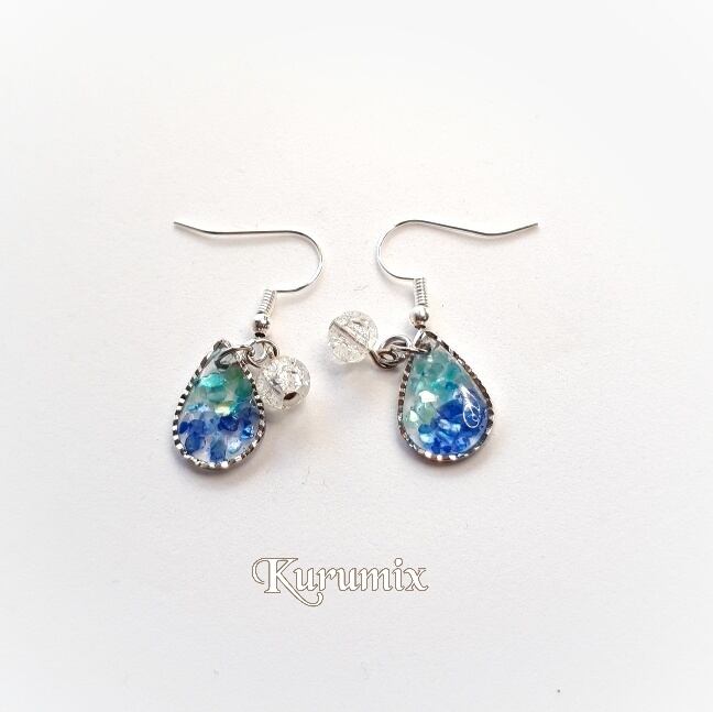 【送料無料】◆◇ピアス・イヤリング選べます◆◇ 青色グラデーションしずく with クラッシュボール レジンピアス/イヤリング