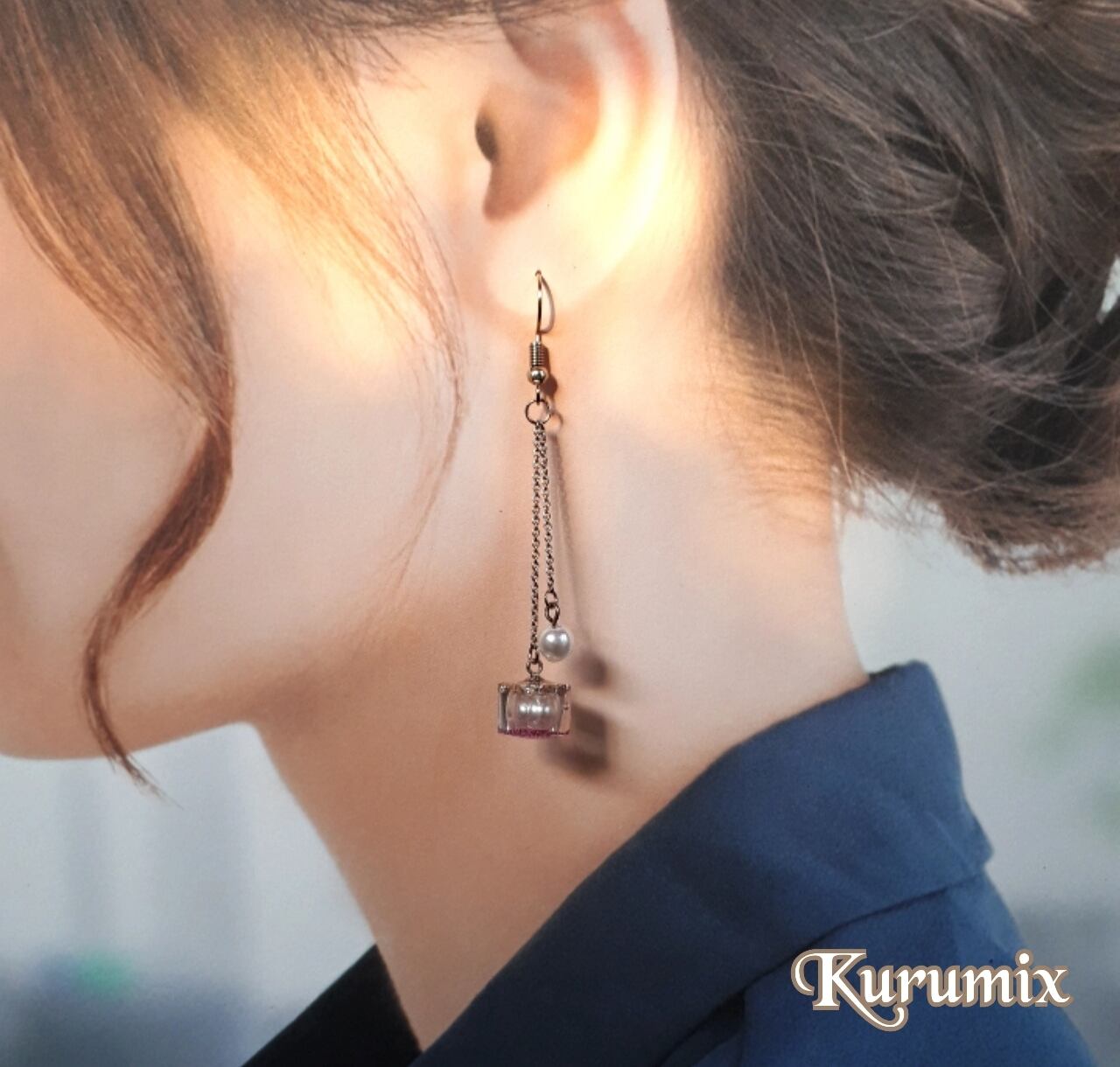 【送料無料】◆◇ピアス・イヤリング選べます◆◇ パール&パール キューブ チェーン・レジンピアス/イヤリング