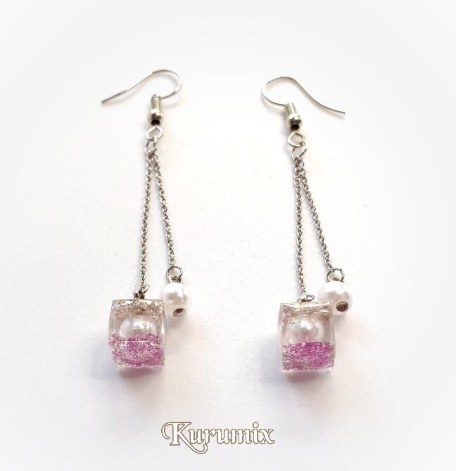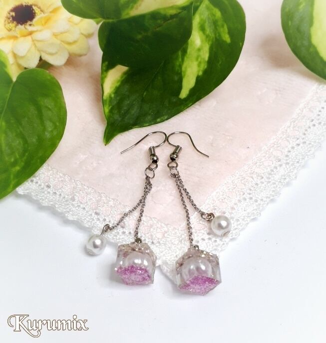 人気のキューブシリーズ。底にピンクのラメを沈めて、パール・シルバーフレークで閉じ込めました。パールを合わせる事で上品さをプラスして、ほんのりと甘さを兼ね備えたオトナの女性に♡ 揺れる度に色味と輝きが変わり楽しめます。