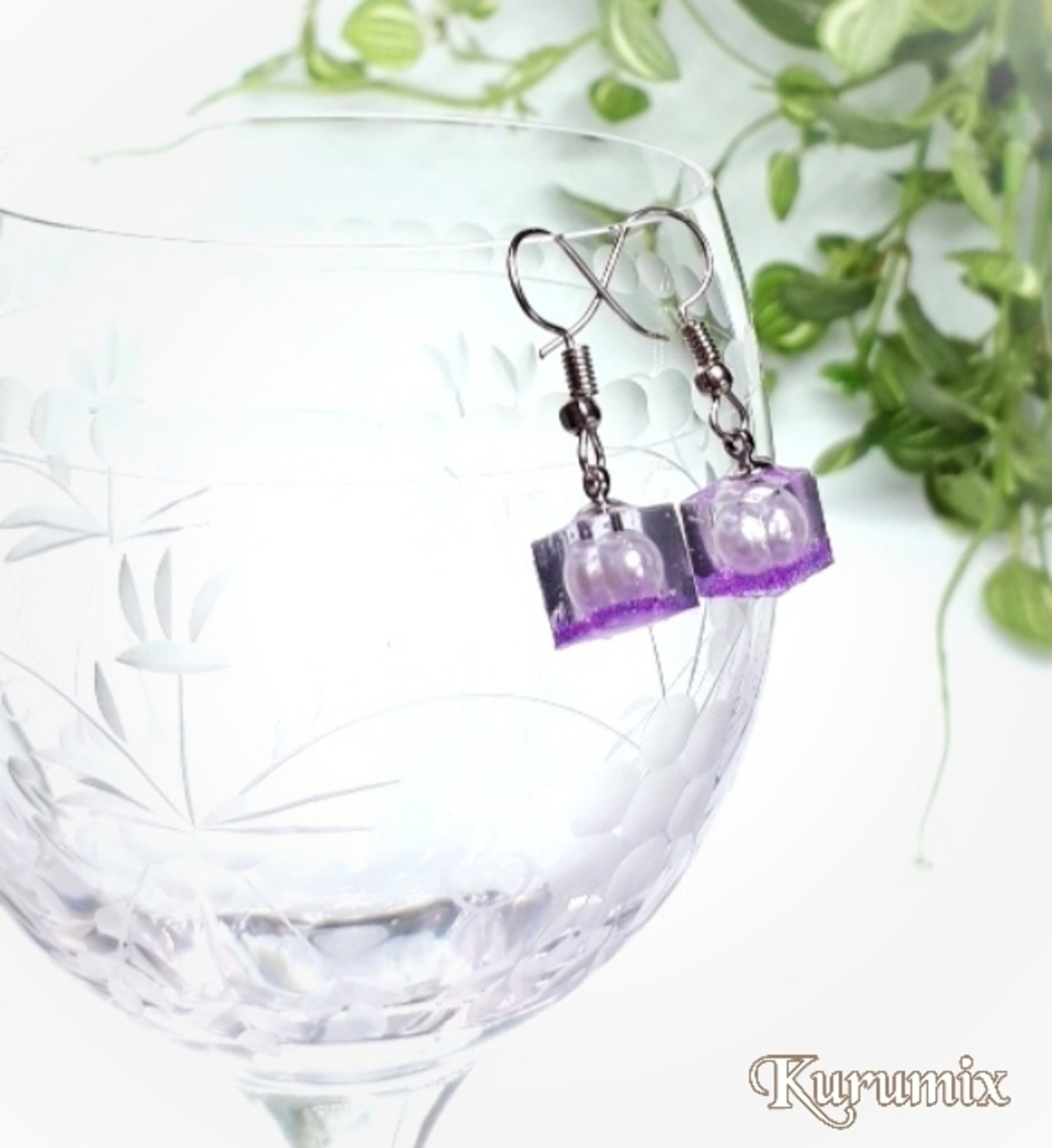 【送料無料】◆◇ピアス・イヤリング選べます◆◇ パープルパールキューブ・レジンピアス/イヤリング