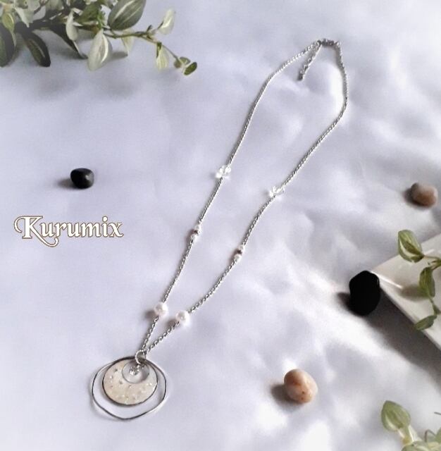 【送料無料】パールホワイト・レジン ロングネックレス