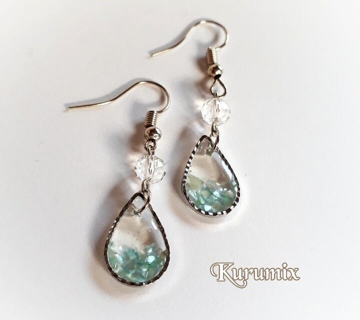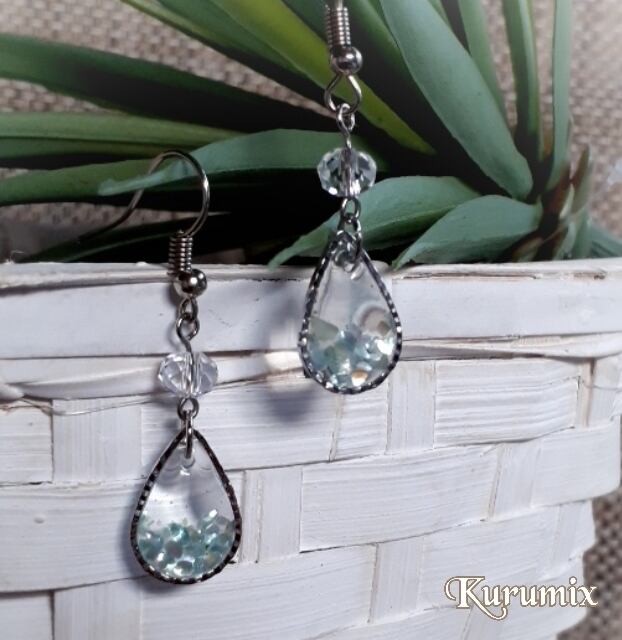 【送料無料】◆◇ピアス・イヤリング選べます◆◇ ライトグレイッシュ・ブルー水しずく レジンピアス/イヤリング